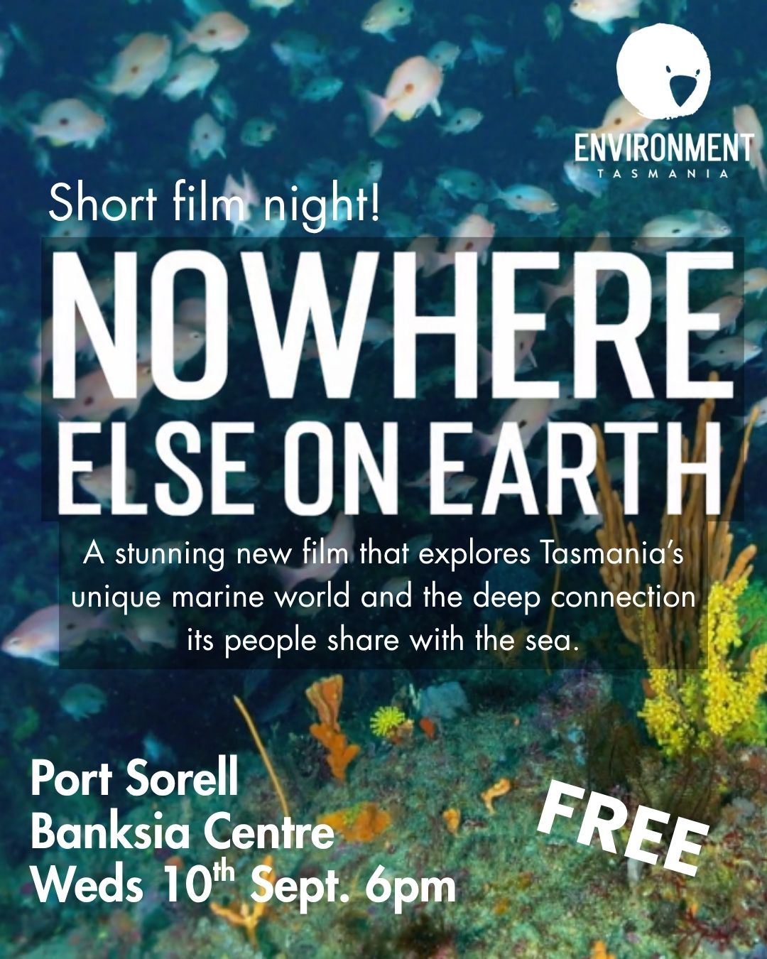 Stay after the screening for a Q&A session with special guests, where we’ll discuss how we can all play a role in safeguarding Tassie’s marine environment.