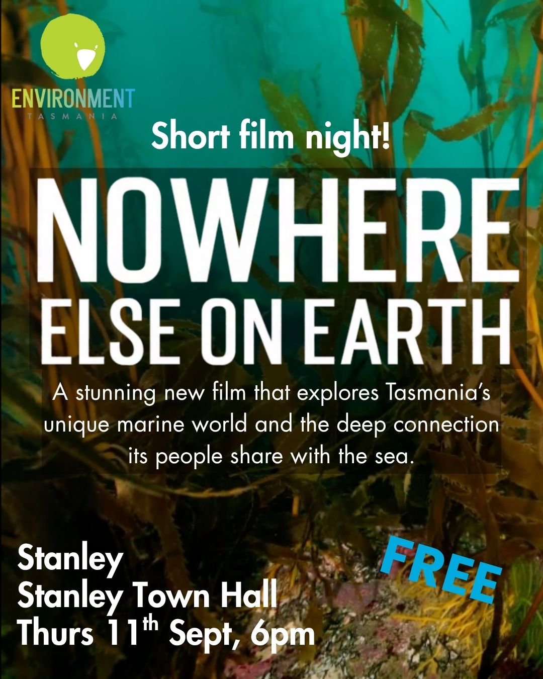 Stay after the screening for a Q&A session with special guests, where we’ll discuss how we can all play a role in safeguarding Tassie’s marine environment.